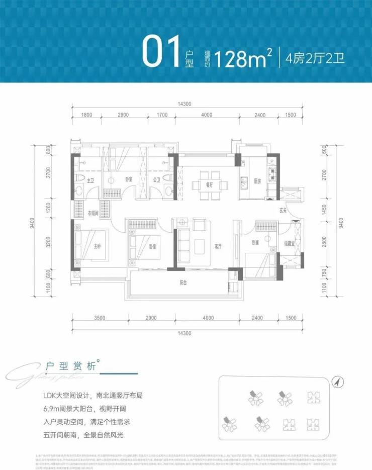 约128㎡4房2卫(1/2/3/4栋01户型)