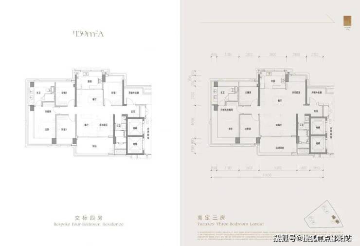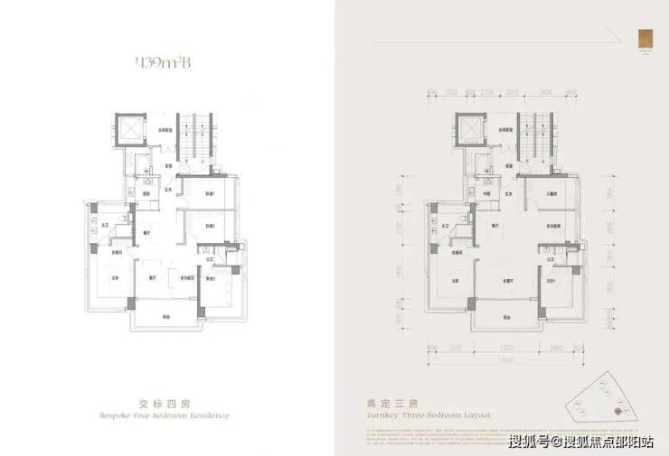139㎡四房两厅两卫:位于3栋,提供A(竖厅南北通透)、B(双龙抱珠)两种格局。四开间朝南设计,主卧配备270°无柱转角飘窗。由SCD团队打造,提供“风尚米”和“经典灰”两种装修风格,可定制为高配版三房。
