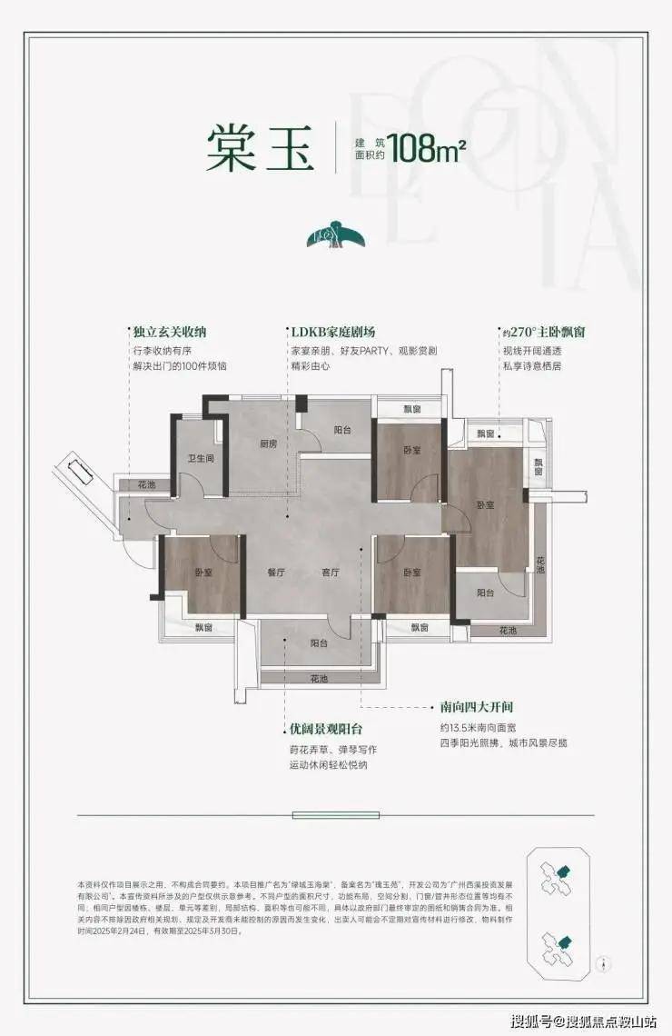 ◎对标当代华宅样本,以超110%使用率、无柱转角窗、大开间朗阔阳台、“LDKB+X”一体化设计、“巨能装”收纳设计、全功能主卧套房等独到设计,绿城玉海棠售楼处电话:400-150-5057同时集粹大师智慧与奢装名品,呈献建筑面积约108-138㎡高定精装华宅,为番禺高端人居,划下崭新的时代刻度。