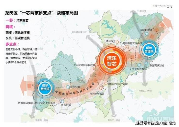 “信息数字核”:强化电子信息产业优势,整合坂雪岗科技城及其周边潜力空间,构建多层次产业生态体系,打造龙岗世界级电子信息产业集群承载区。
