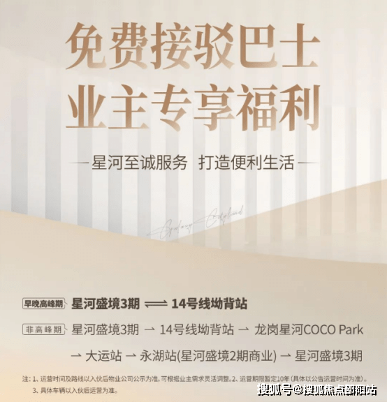 居住在星河盛境3期的业主们将享有专享福利!开发商为了业主生活更为便捷,业主入伙后将启动接驳巴士。