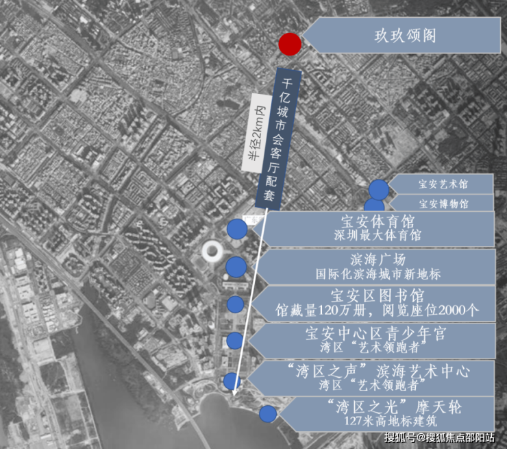 2km范围内悦享千亿大湾区会客厅配套:包括现在已经在运营的“湾区之光”地标摩天轮、欢乐海港、滨海文化公园、宝安体育场、图书馆、青少年宫、演艺中心等