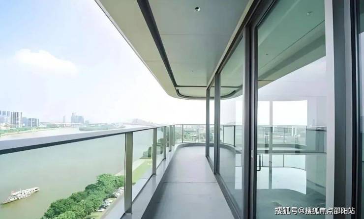 更震撼的体验,是当你步入阳台时。弧形玻璃的设计,让江景全画幅被你的视觉所占有,带来极强的视觉冲击力。驻足于此,你不需要去眺望江景,而是开阔的珠江直接将你环抱。