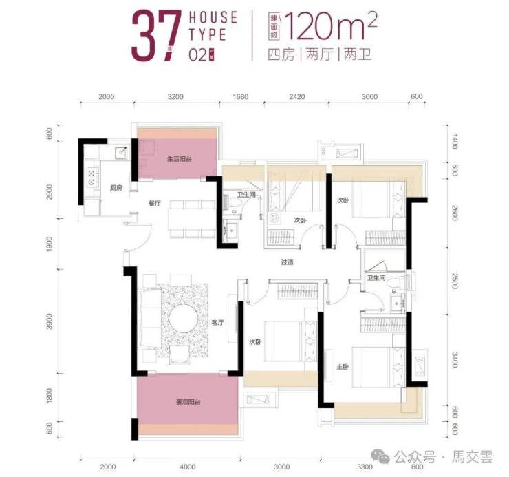 120㎡四房两卫(南北通透)