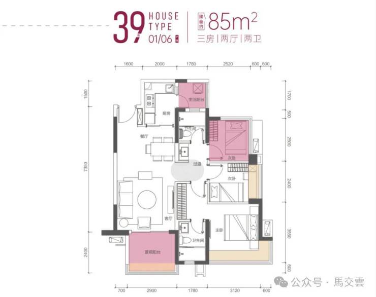 85㎡ 三房两卫(朝南)