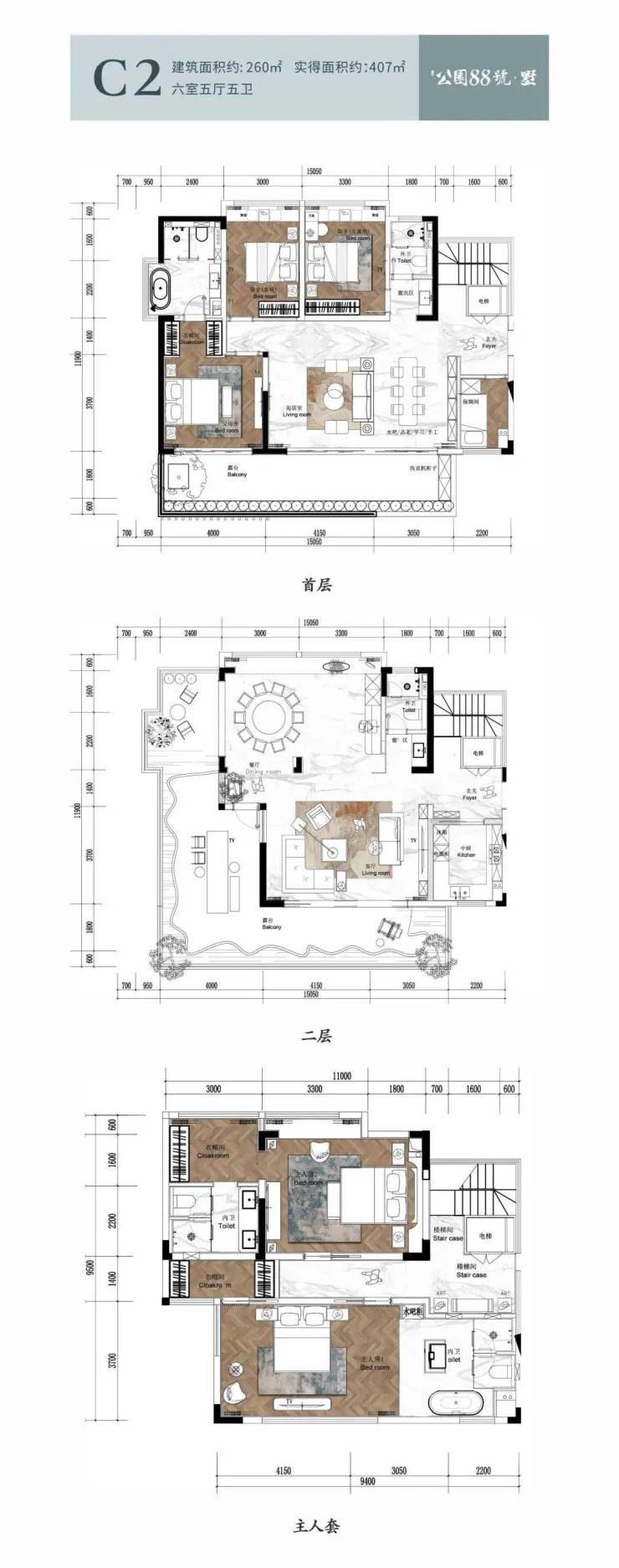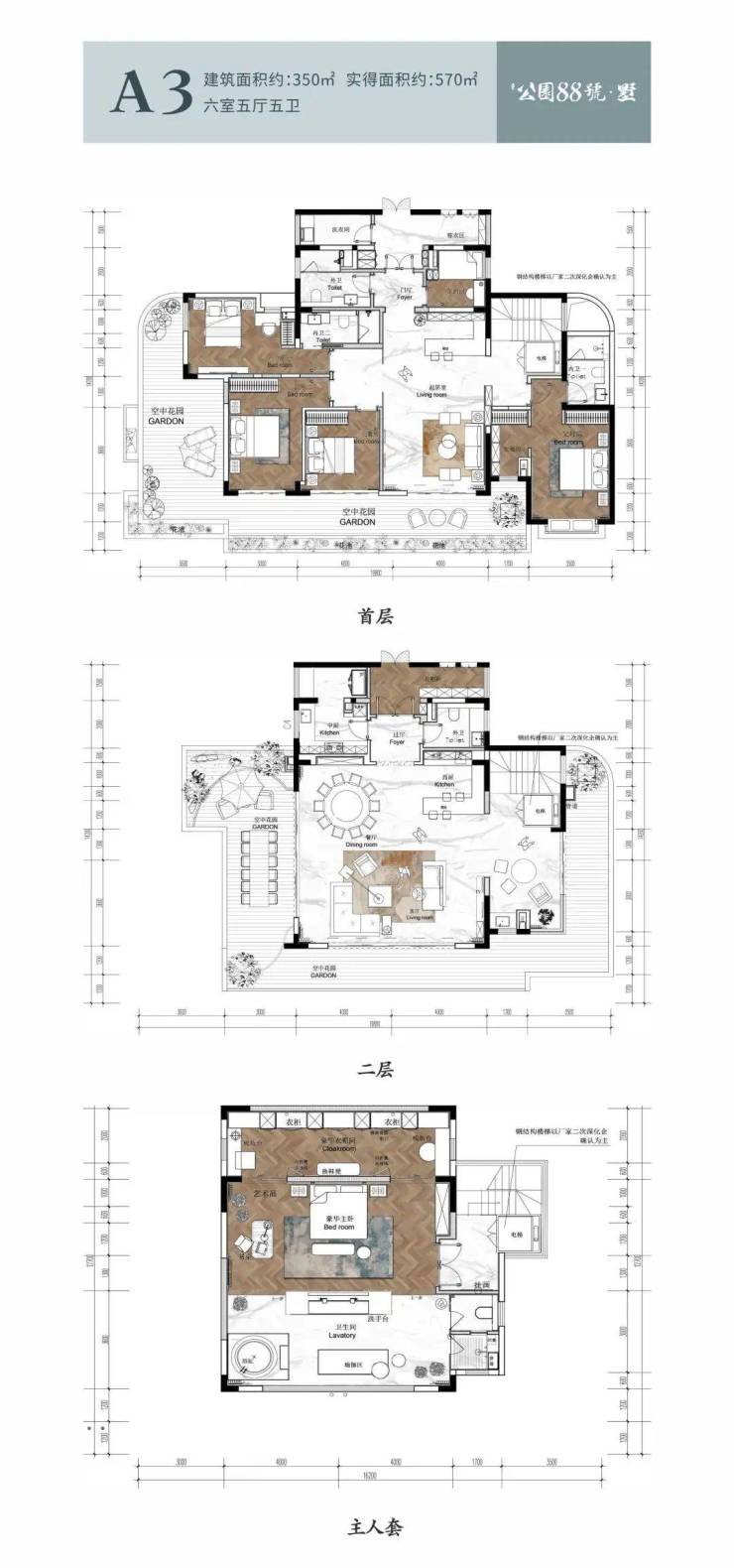 奢华主卧套房配独立衣帽间卫浴 私密性高