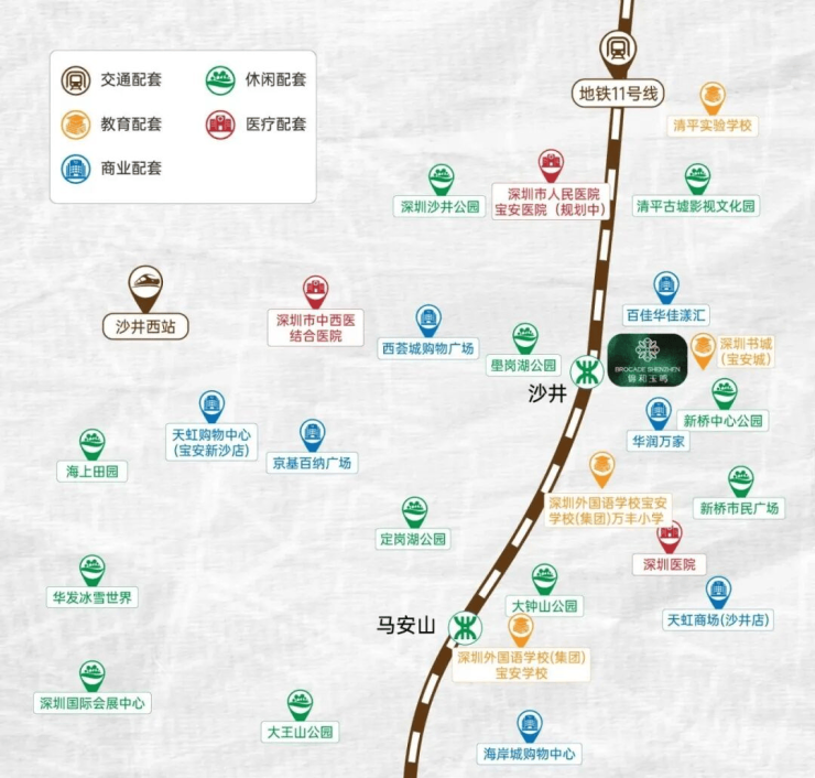交通:距离地铁11号线沙井站C、D出口仅约400米,步行约7分钟可达。
