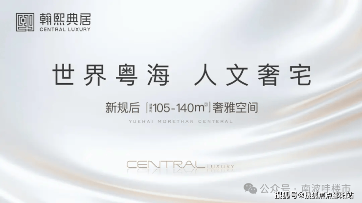 翰熙典居,粤海十年之后再上新,全新奢居综合体礼献峯层。可售主力户型新规后建面约105-140㎡奢雅空间,全明方正户型将空间奢阔感与生活舒适度完美契合。