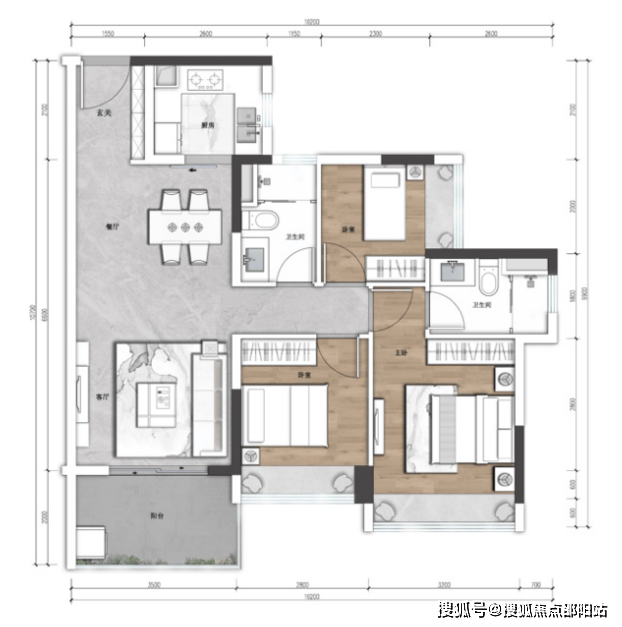 【户型革新:景随人动的空间魔法】建面约95㎡户型通过"三开间朝南+双飘窗系统",实现约92%得房率。其创新性的"S型动线"设计,使厨房操作台与客厅视野形成270°环景关系;