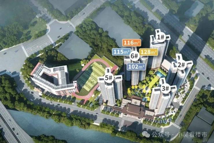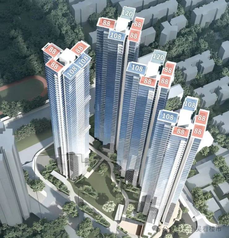 3、绿城馥香园暂时没开盘,小区总共5栋楼,首推5.6栋,总共32层高,2梯4户设计,预计27年底收楼或者28年初,容积率3.86。