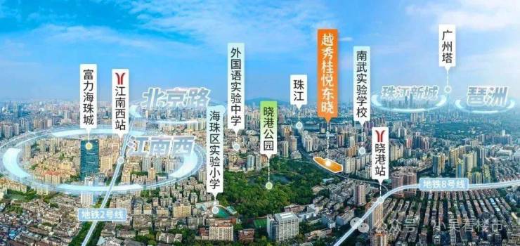 2、越秀桂悦东晓,距离8号线晓岗站约900米左右,步行需要13分钟,坐地铁去珠江新城大概30分左右,开车仅7公里。