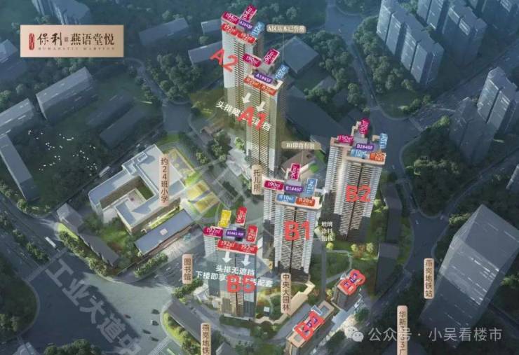 1、燕语堂悦目前在售B2栋3梯5户,还有A2栋的尾货-3梯5户,B5栋的尾货-3梯6户,总共41-43-45层,A2栋26年底收楼,B5栋27年9月收楼,B2栋27年11月收楼,容积率4.5。