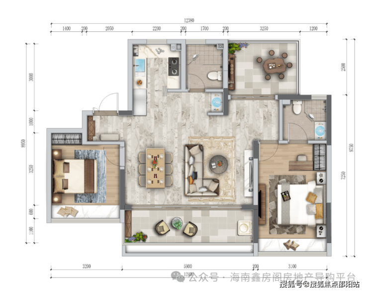 【阔境美宅:三室两厅两卫 建面约103-105㎡】