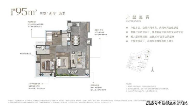 竖厅布局,动静分区清晰,LDK 一体化设计,空间利用率高。主卧套房带独立卫浴,次卧可灵活改造。全屋多飘窗设计,采光观景俱佳,价格:折后单价 约7.33-8.77 万 /㎡,总价约 687-834 万 / 套。