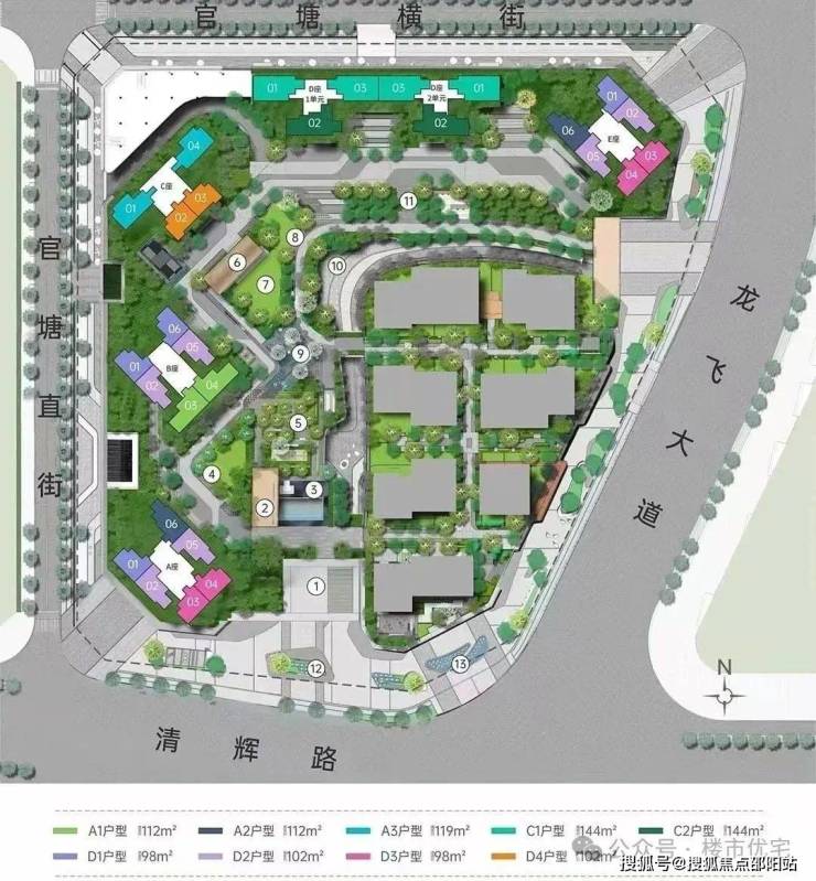 【梯户比】:A/B/E座3梯6户;C座2梯4户;D座2梯3户