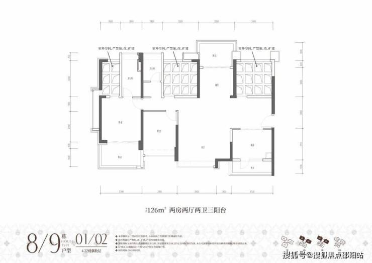 ①高阔奢享:建面约86-176㎡墅境宽宅,改善型大四房,全南向户型天然舒适;两梯三户低梯户比,多阳台露台设计,悦享阔绰居住空间;方正户型结构搭载更多半开放设计,高阔空间实用率与灵活性大幅提升。