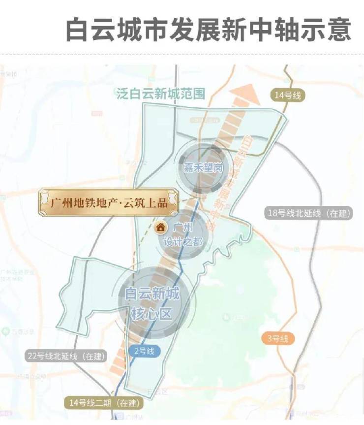 广州设计之都,南联白云新城核心区,北接嘉禾望岗商圈,联动双核,使得白云城市发展新中轴,跃然纸上!