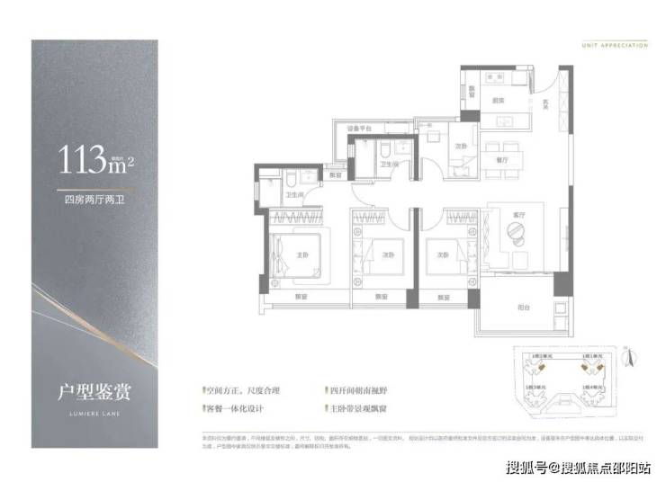 •产品:建面约83-113㎡3-4房品智美学住宅,多面宽朝阳,揽清风入怀;
