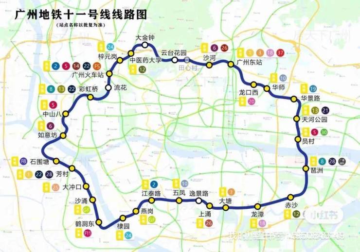 11号线是广州首条市区大环线,串联广州中心五区,与广州现有及未来的所有地铁实现换乘,被称为“换乘之王”(目前工程进度已达到97%,今年底就会通车)虹吸全广州的优质资源
