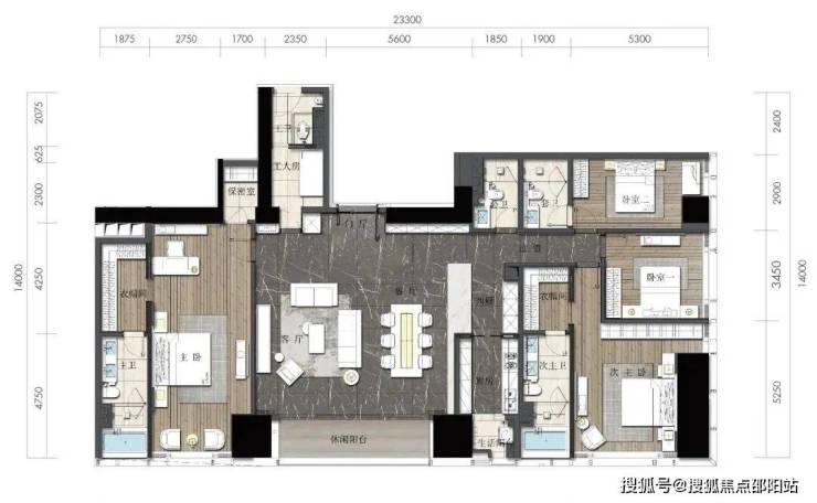 约164㎡2房2厅2卫(独立入户玄关,动静分离,约33㎡豪华主卧,承载品质生活)