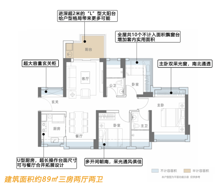 建筑面积约89㎡户型,有10个飘窗;LDKB一体化设计。U型厨房,动线短且方便,还贴心预留双开门冰箱位;主卧套房设计,并且实现了南北通透,次卧与公卫也可以✨✨远洋天祺售楼处电话:400-937-9250【☎☎售楼处电话已认证】✨✽✽✽✽