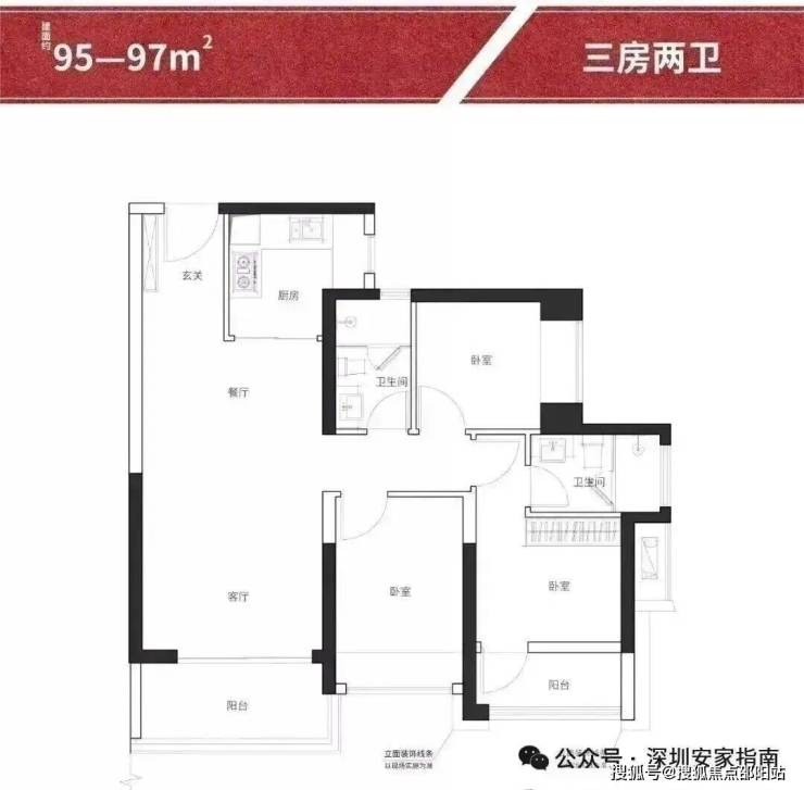 三房两卫传统户型,动静分离。总套数503套。东南或西南朝向,视野开阔。动静分区布局主要生活空间南向,光照充足。客厅带有大进深阳台宽敞明亮。主次卧开间进深比良好空间利用充分。餐厨空间紧凑实用,U型厨房自然通风采光。