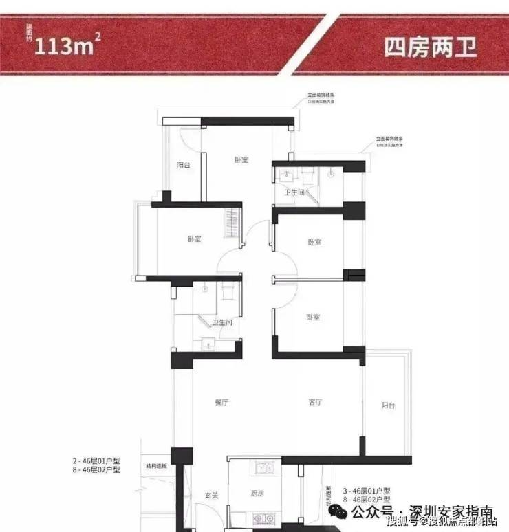 四房两厅两卫,竖厅。总套数82套。西南花园朝向,安静舒适。动静分区布局大开间短进深,主要生活空间光照充足景观优秀。客厅带有大面积景观阳台,宽敞舒适。主卧功能全面空间舒适。餐厨空间宽敞独立,大采光面U型厨房。就三栋一单元有,每层两户。02更通透。
