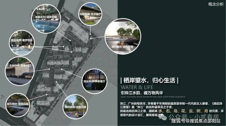 豪宅园林缔造者上海朗道景观规划设计有限公司,从刻画雨后珠江之景的《雨后珠江登望》中提取水、石、鸟、花、云、树、舟的自然元素,以现代的设计展现自然景观的惬意意境之美,为高净值人群的生活体验和使用需求提供顶级生活范本。