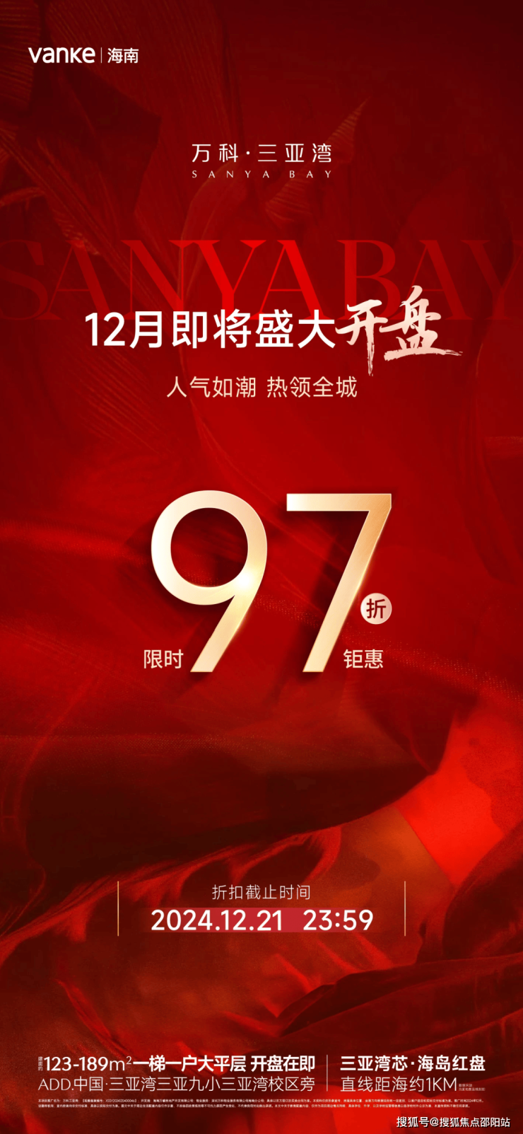 三亚楼市经过多年调整,或许已经确认上涨周期。周期是一段时间,而反转只需要一个节点。我的建议是将确定性收入囊中。万科·三亚湾12月21号正式开盘,全系产品限时享97折钜惠,如果你也认同这是个绝佳的买入点,那就千万不要错过!