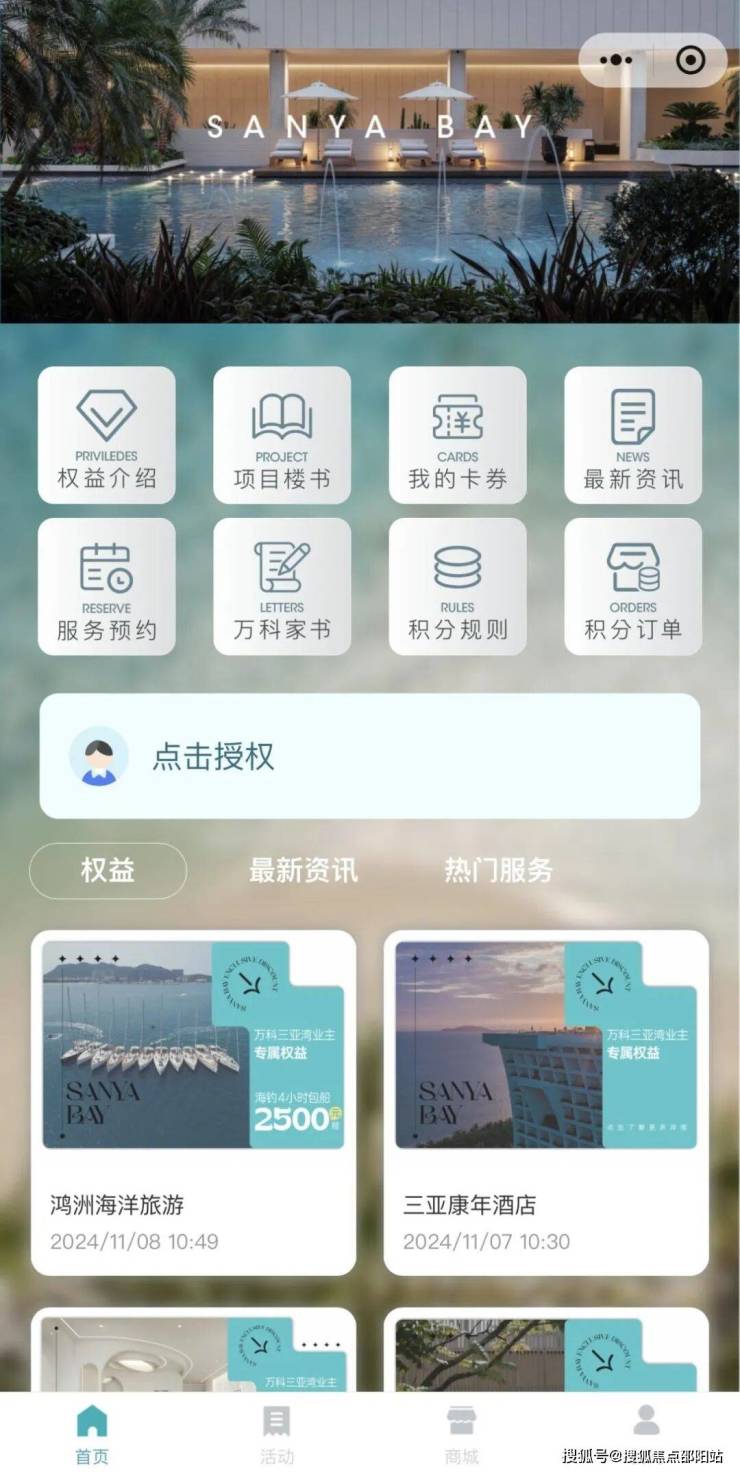 为了满足万科业主在海南旅居度假的各项需求,万科专门打造了海南万客会小程序,其中包含商家为万科业主定制的专属优惠,也有万科为业主定制的各项专属服务。