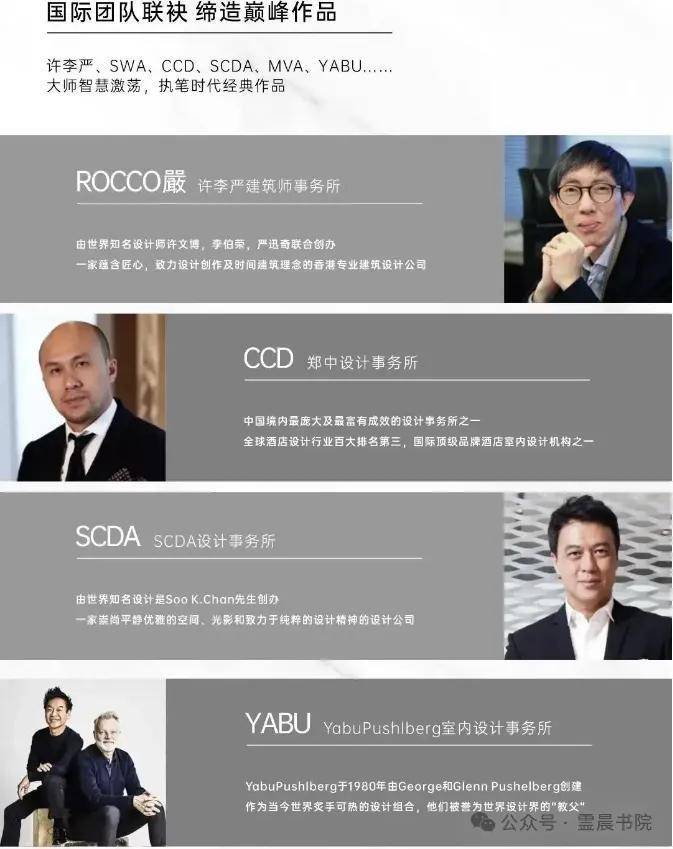 许李严、CCD、SCDA、YABU、ALT、SWA、MVA、迈进等国际顶级大师团队的智慧在此集结。