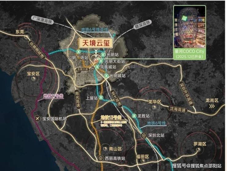 邻近地铁6号线光明大街站,3站至上屋站换乘13号线,5站直抵南山留仙洞站,8站直达南山;通过光明城站可换乘莞惠深城际、赣深高铁、广深港高铁等。
