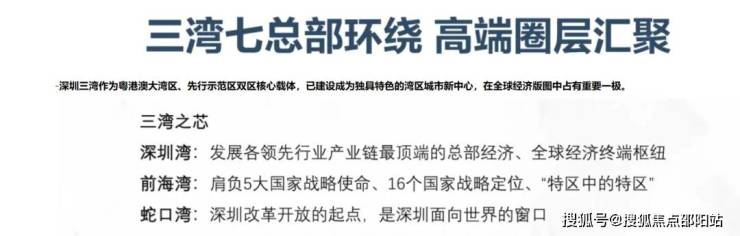 七大全球总部基地,激荡全球资本的湾区超核,由总部经济带串联,吸引大批诸如腾讯、大疆、阿里巴巴等行业龙头企业,以及大批总部企业入驻,未来将吸引260万人才聚集。