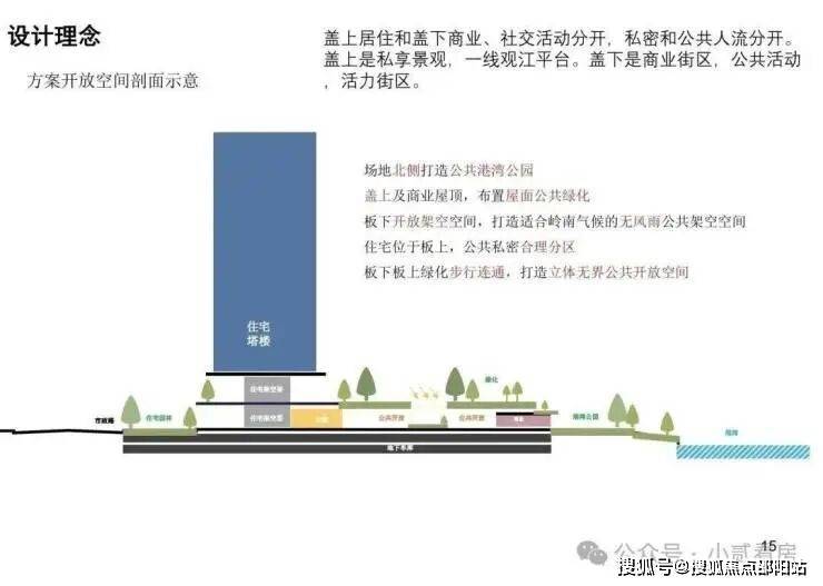 通过盖板设计造就的盖上私密园林、盖下滨江商业带,叠加270°环幕滨江会所和公共港湾公园,真的很city了。