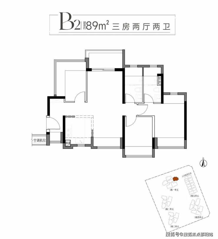 二:建面约89平方B1B2户型三房两厅两卫