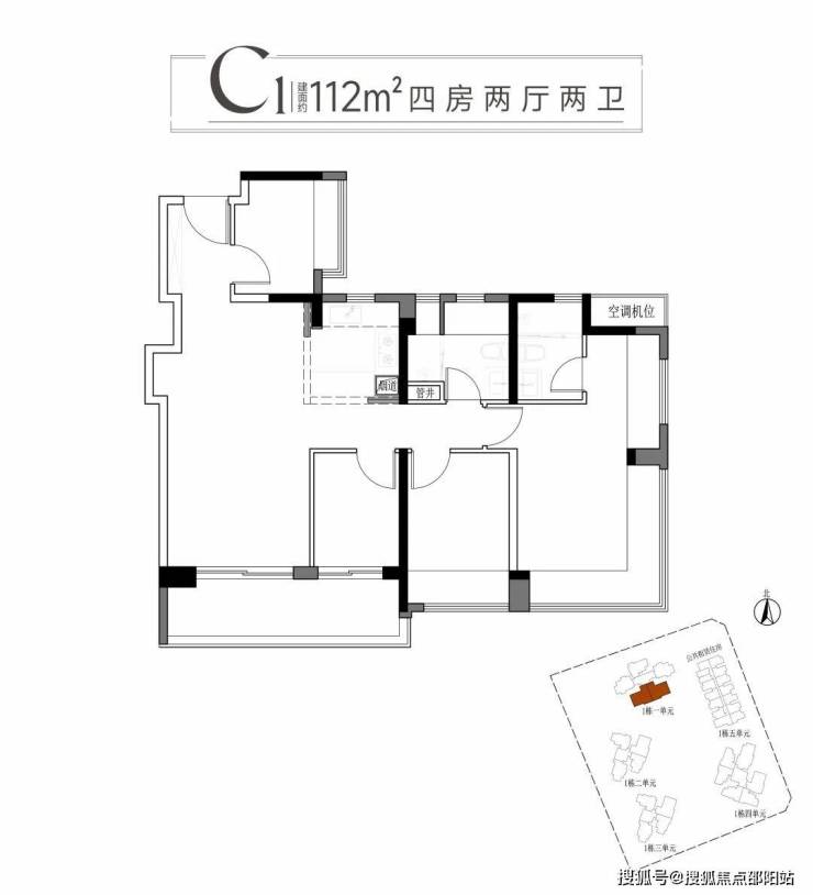 三:建面约112平方C1户型四房两厅两卫