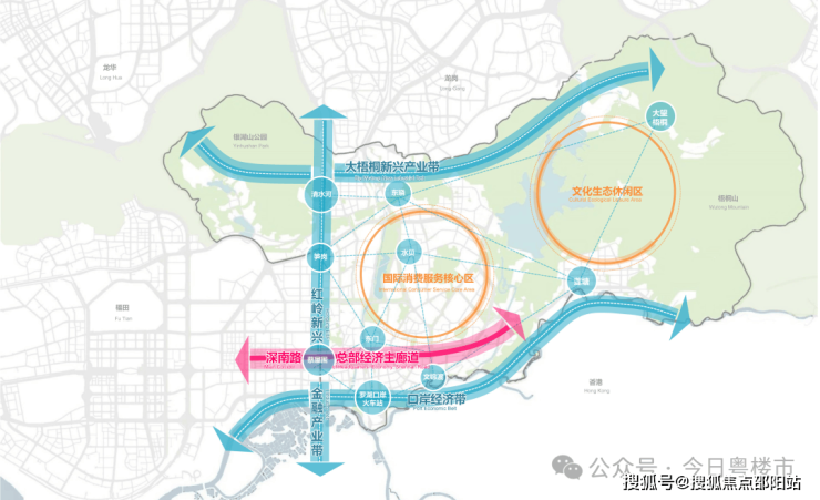 选址梧桐山下,比邻深圳河,对望香港红花岭,三面环山,得天独厚山景资源,南北双向无遮拦视野,户户观山景。