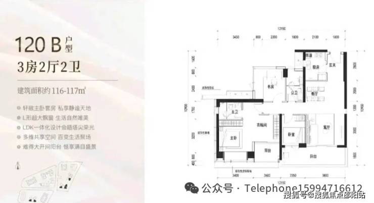 117㎡的3房2厅2卫,B户型(2栋4单元01.02.05/3栋2单元02/05户型),设计的是经典竖厅格局,客厅3.8米开间,LDKB一体化设计,3个卧室分别做到了主卧28.6㎡/次卧9.6㎡/次卧7.05㎡(包含墙体飘窗),客厅连接次卧出6.15米长的宽景大阳台,U型厨房,卫生间干湿分离,得房率约90%(包含赠送),东南或正东朝向。其实也可以改4房。