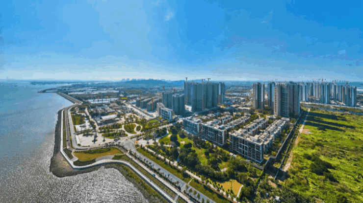 先来看看它的位置,凯德山海连城位于广州番禺东部,属于石楼板块,对面是东莞新沙港口。临近狮子洋,近海约40米,背靠莲花山。