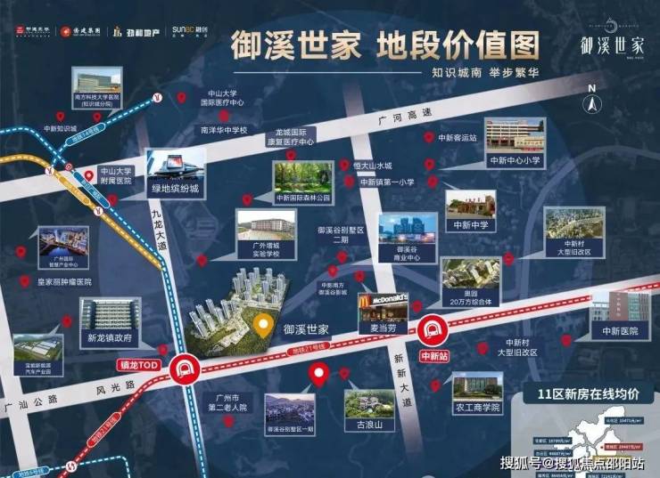 距离地铁21号线中新站(约1000米)、地铁14/21号线镇龙站(约1000米),快线3站到天河,7站到珠江新城。