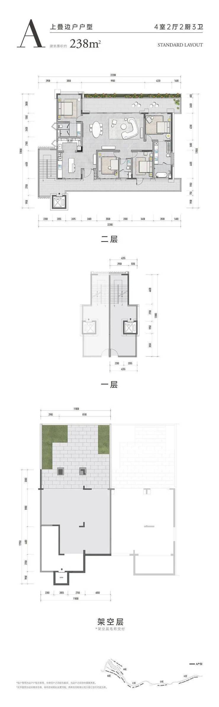 此次山之屿推出的A/B区叠院新品,为建面约172㎡—180㎡的B户型。