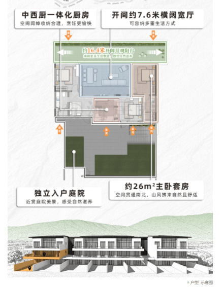 不管是上叠还是下叠,都遵循一个逻辑:围绕庭院和景观布置户型。
