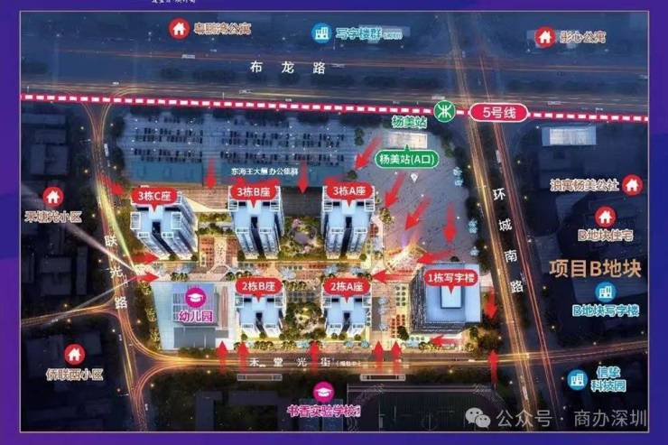 1. 【旧改云集,助推价值腾飞】:片区规划有89个旧改项目,未来3-5年,坂田是深圳最多的旧改片区,面积高达2120万平,相当于三个福田CBD的体量,项目最直观收益的旧改,项目北侧布龙路的佳兆业杨美旧改,由佳兆业与信义集团两手打造高端社区、约9万拆除范围,项目东面都会广场二期商业住宅,预计新增约20000+高端人口的消费力,项目南面规划九年一贯制学校,直面每日固定人流8000人。