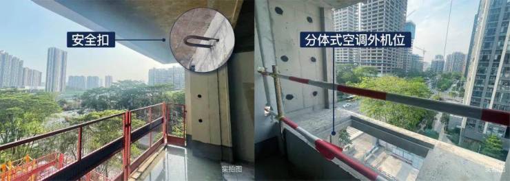各户型均配置两处约500kg受力二级扣逃生装置,每处设2个安全扣(两处分别为:阳台、设备平台),与建筑主体同步浇筑,结构安全性显著提升。