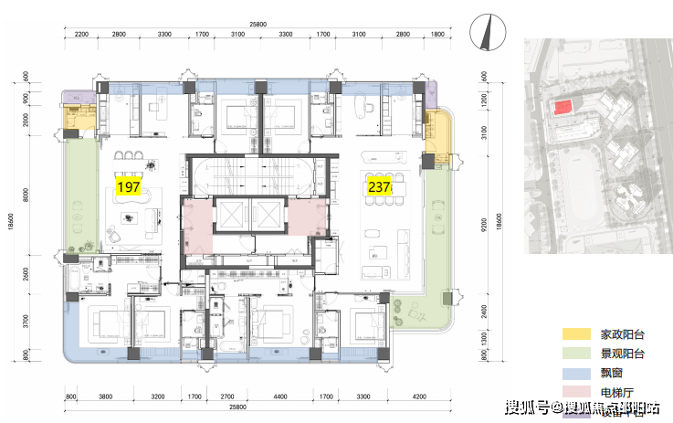 197㎡阳台达到8米,237㎡阳台达到11.8米,更大尺度保证采通风和视野;