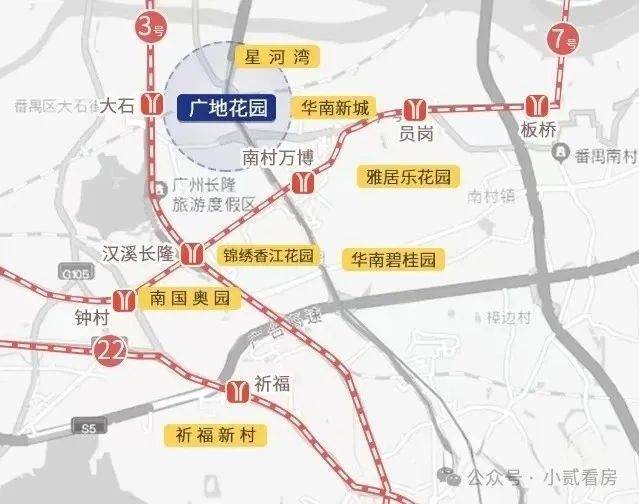 曾经的广地花园和祈福新邨、华南碧桂园、广州雅居乐花园、广州星河湾、锦绣香江花园、南国奥林匹克花园、华南新城,被誉为华南板块的八大金刚。