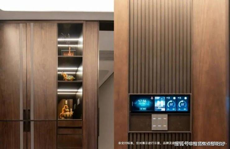 从家门口开始,复合钢木门搭配建发子公司自研发12.6英寸智能控制面板,彰显大户人家的气派;约350cm进深玄关柜,内置可活动层板,储物置物两不误。