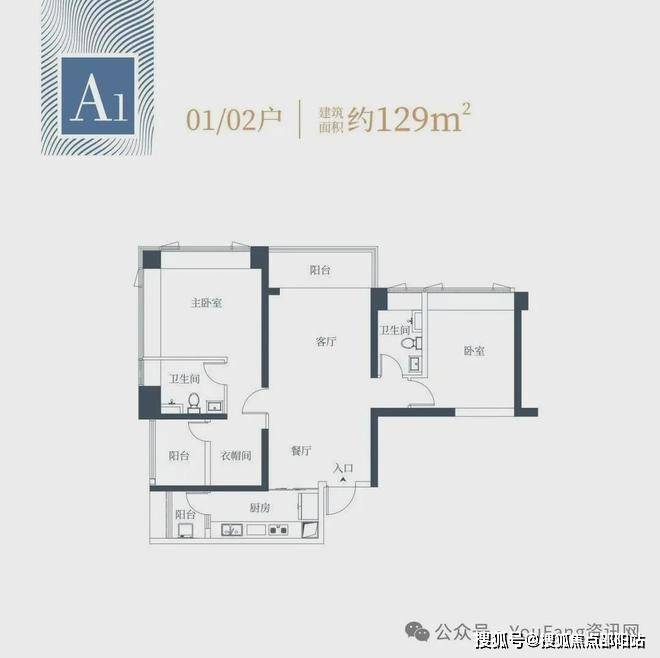 1栋一单元A1、A2户型:面积约为129㎡;