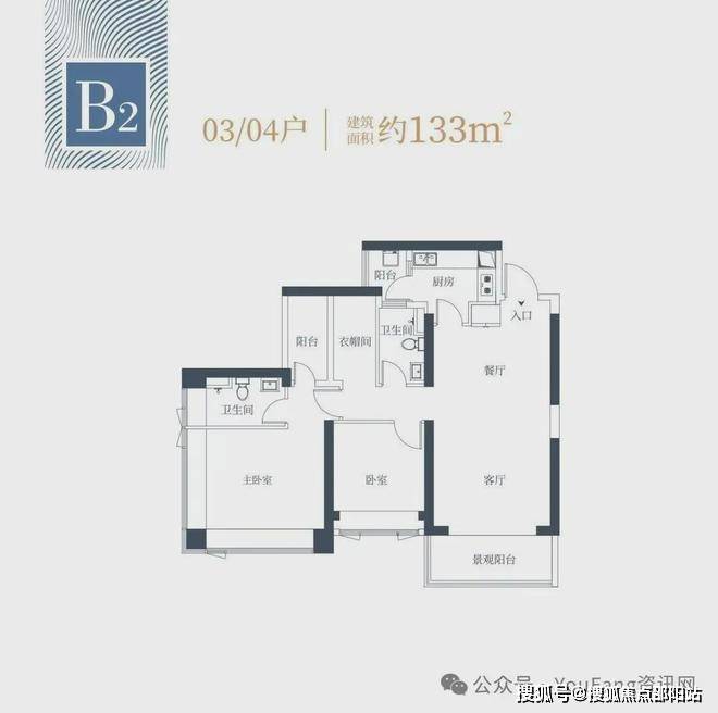 1栋二单元B2户型:面积约为133㎡;