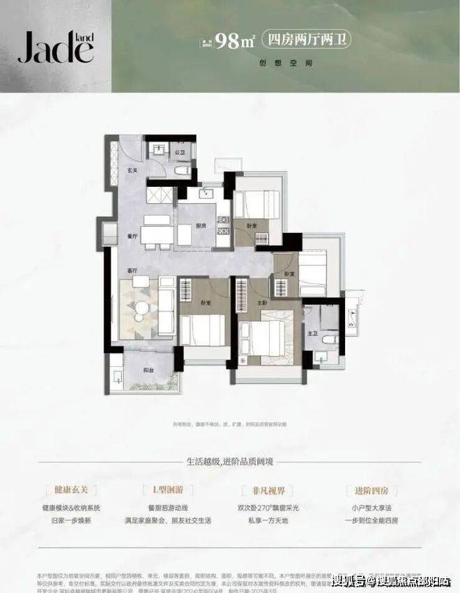 【98㎡4房2卫】板块内目前「唯一」面积段区间做到四房的产品‼空间刺客‼